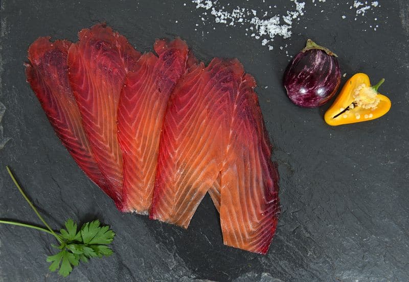 • Saumon entier ou tranché mariné betterave